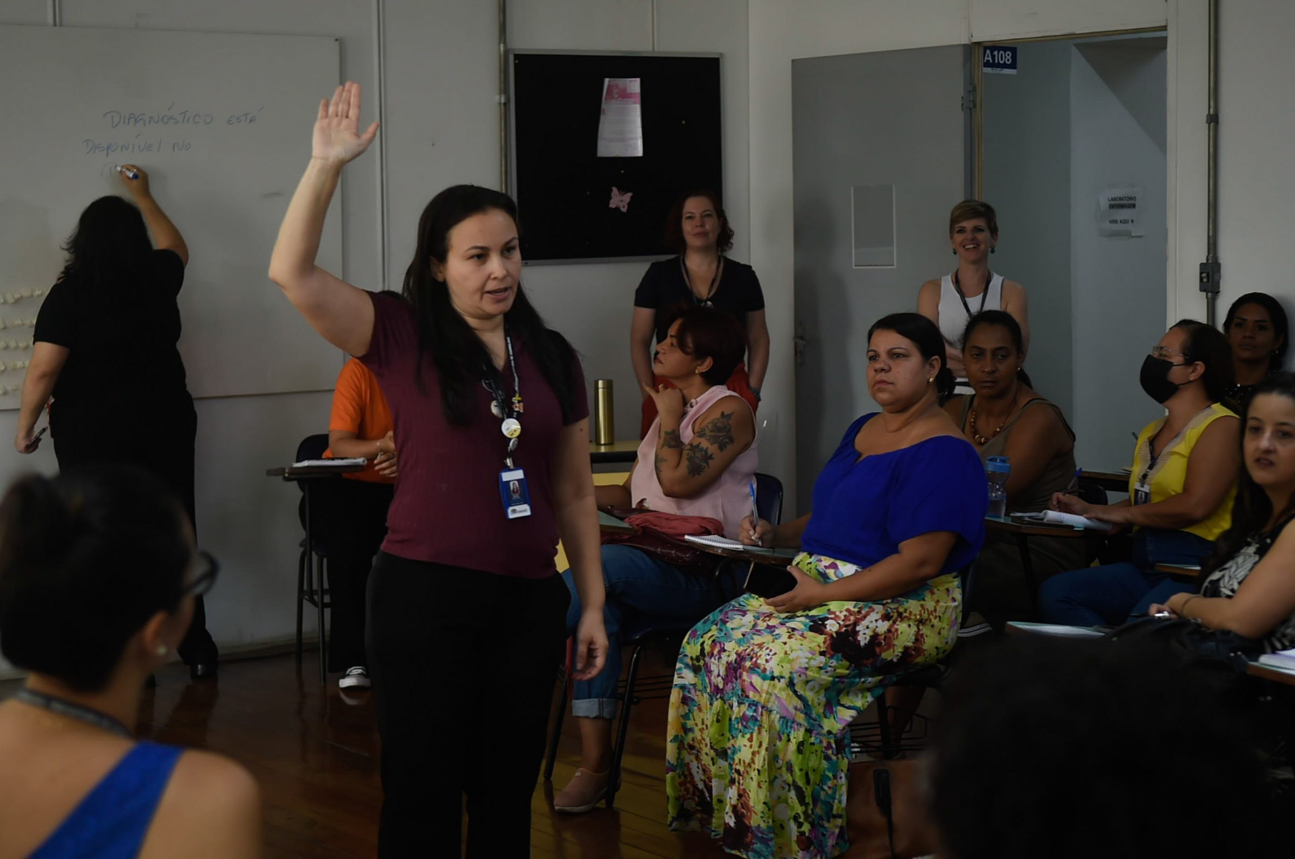 A formação foi conduzida pela chefe de divisão técnica da rede de urgência e emergência e a enfermeira, Simone Lima, e pela assistente social da Secretaria de Saúde, Gilmara Azenha, que abordaram os tipos de violência física e psicológica, como identificá-las e os fluxos de encaminhamento do atendimento às vítimas. As palestrantes também aplicaram diversas dinâmicas de sensibilização ao grupo como a do varal, na qual os participantes expuseram sentimentos pessoais associados às violências que já tenham vivenciado.