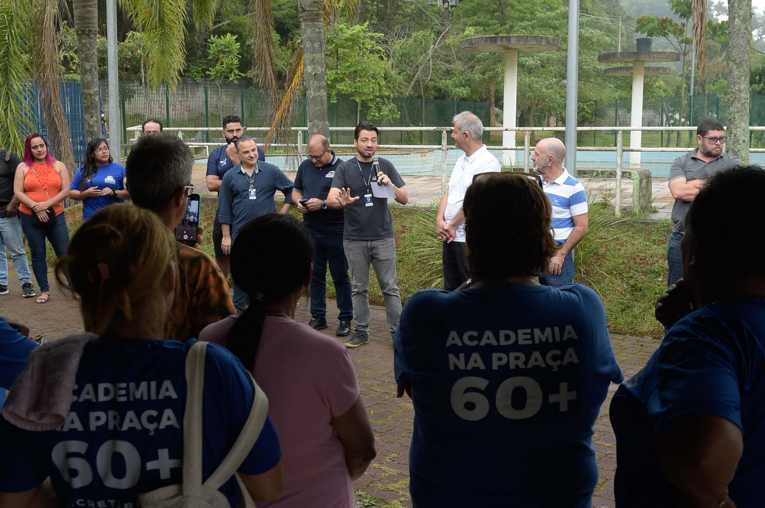 A Prefeitura de Guarulhos inaugurou nesta quarta-feira (25) o 26º polo do projeto Academia na Praça 60+, que funcionará no Balneário Água Azul (avenida Guanabara, s/nº), na região do Bonsucesso. A entrega oficial foi feita pelo prefeito Guti, acompanhado do secretário de Governo, Edmilson Americano, do subsecretário de Políticas para o Idoso, Walid Shuqair, do vereador Lameh Smeili, entre outras autoridades.