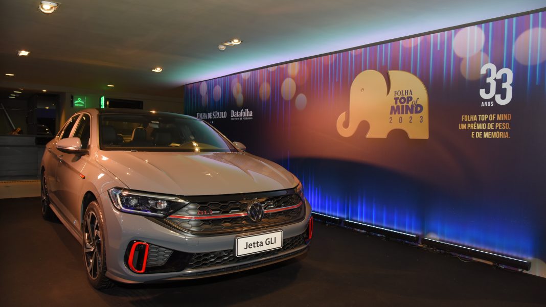 Legenda: Volkswagen Jetta GLI em exposição no evento Top of Mind. Sedã representa design, esportividade, tecnologia e é um dos modelos mais admirados pelos clientes da marca
