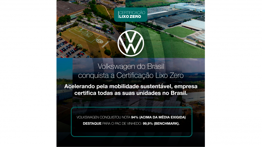 A Volkswagen do Brasil avança em sua estratégia de sustentabilidade com conquistas ambientais relevantes. A Volkswagen é a 1ª fabricante de veículos do Brasil a conquistar o Certificado Lixo Zero multisites, ou seja, todas as unidades da empresa foram certificadas. Essa certificação comprova que a Volkswagen encaminha de forma ambientalmente correta seus resíduos.