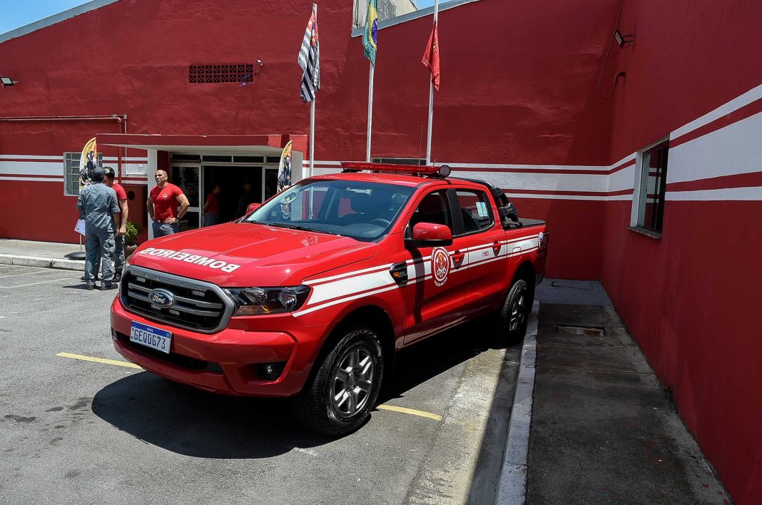 A Prefeitura de Guarulhos adquiriu uma nova viatura ao 5º Grupamento do Corpo de Bombeiros, cuja compra foi possibilitada por meio do Fundo Municipal de Segurança Pública. O prefeito Guti esteve na sede da equipe nesta quarta-feira (22), no Jardim Bom Clima, para a entrega das chaves da picape 4×4, modelo Ford Ranger, vermelha e adesivada com a identidade visual da corporação.