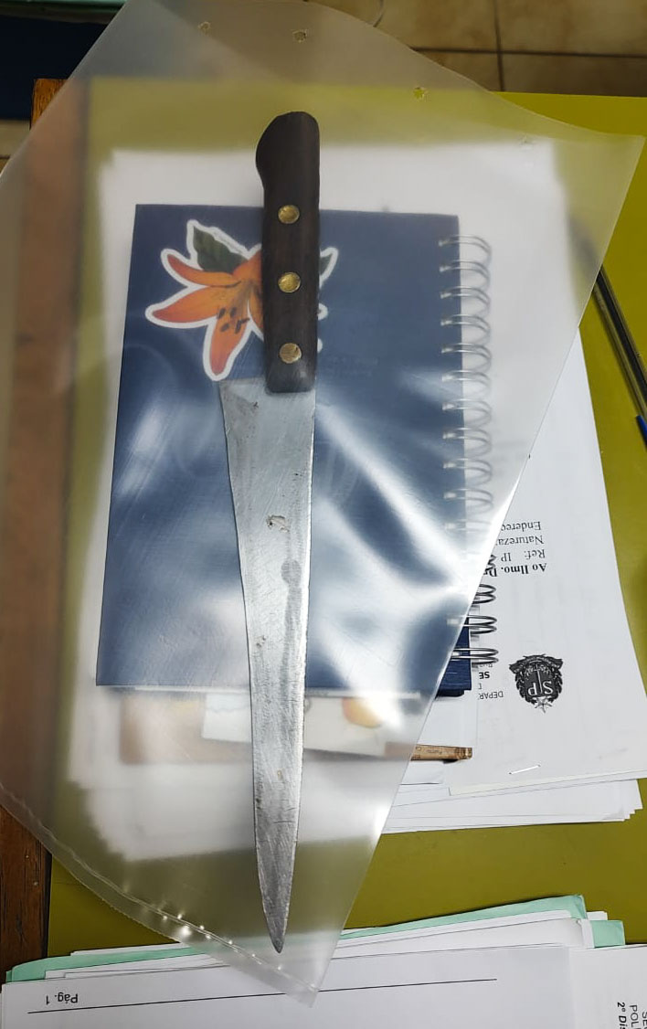 O adolescente, portando o celular e uma faca, foi localizado por outra equipe de guardas, acionada pelo posto de serviço. A vítima o reconheceu como autor dos fatos e as partes foram apresentadas imediatamente à autoridade de plantão no 2° Distrito Policial, que solicitou a presença do responsável pelo adolescente.
