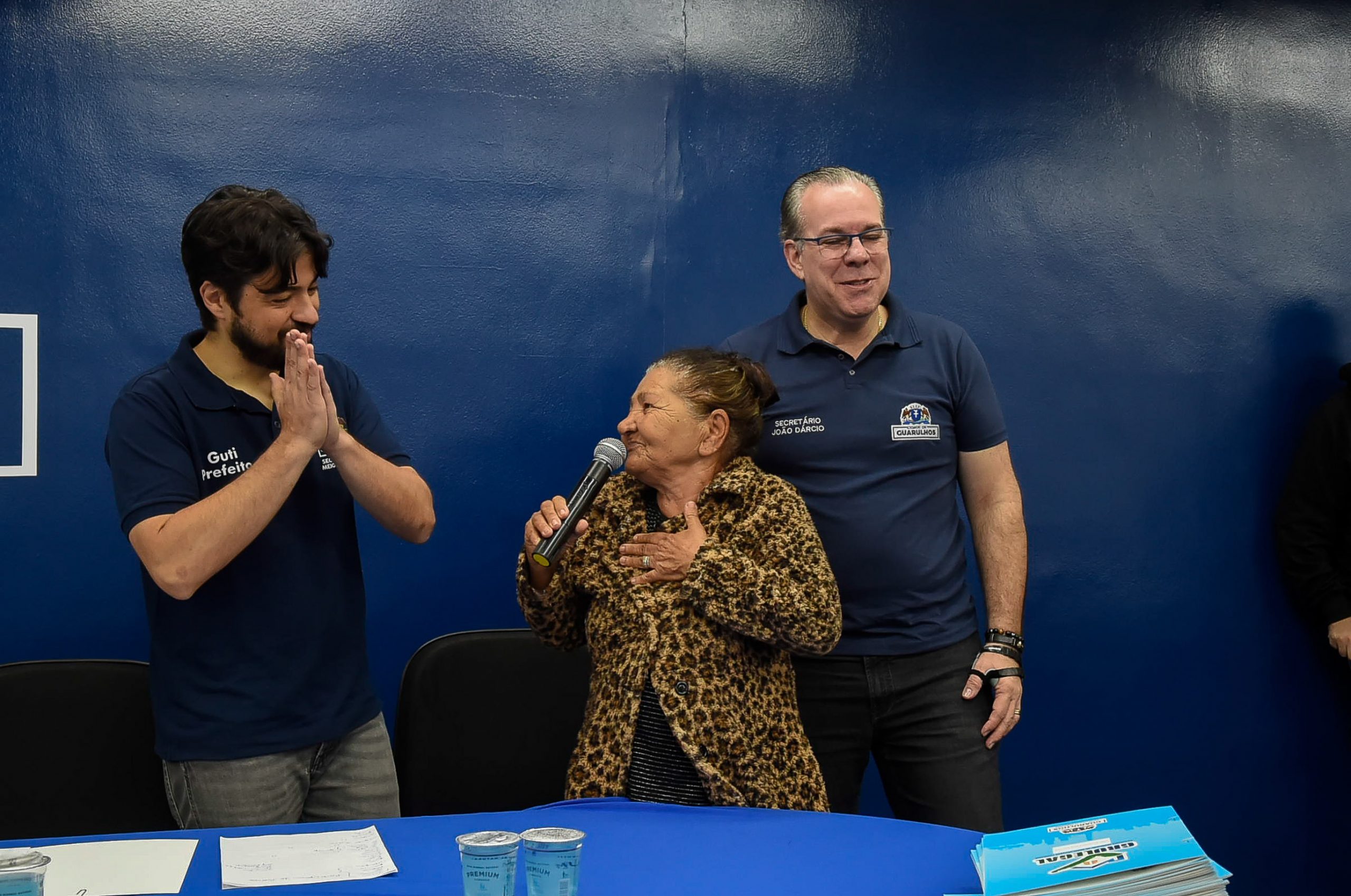 A moradora Creusa Gomes dos Santos aguardou por esse momento por 46 anos e relata como receber o título de propriedade foi um dos momentos mais especiais de sua vida. “Pra mim é a maior riqueza do mundo, hoje eu tenho o papel da minha casa, estou feliz. É como se eu tivesse ganhado na Tele Sena. Tiro meu chapéu para o prefeito Guti e para todo o time da (Secretaria de) Habitação”.