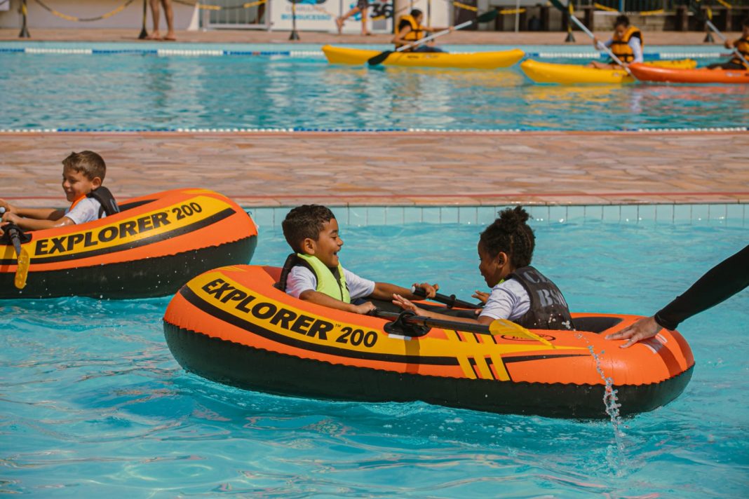 Tirolesa, parede de escalada, bungee trampolim, brinquedos infláveis, pedalinho, caiaque, recreação, gincanas e atividades na piscina estão entre as atrações, todas elas acompanhadas por equipes de apoio para garantir a segurança e a diversão da criançada.