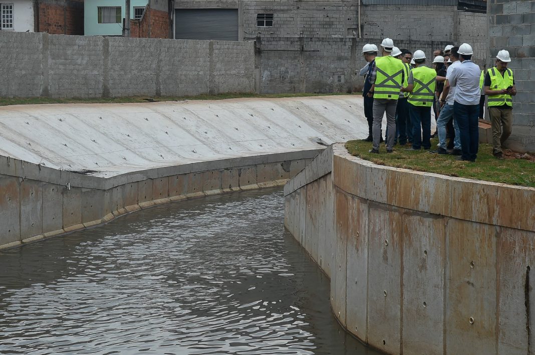 Simultaneamente estão em andamento as canalizações da travessia na avenida Lauro de Gusmão e da travessia do córrego Guaraçau.