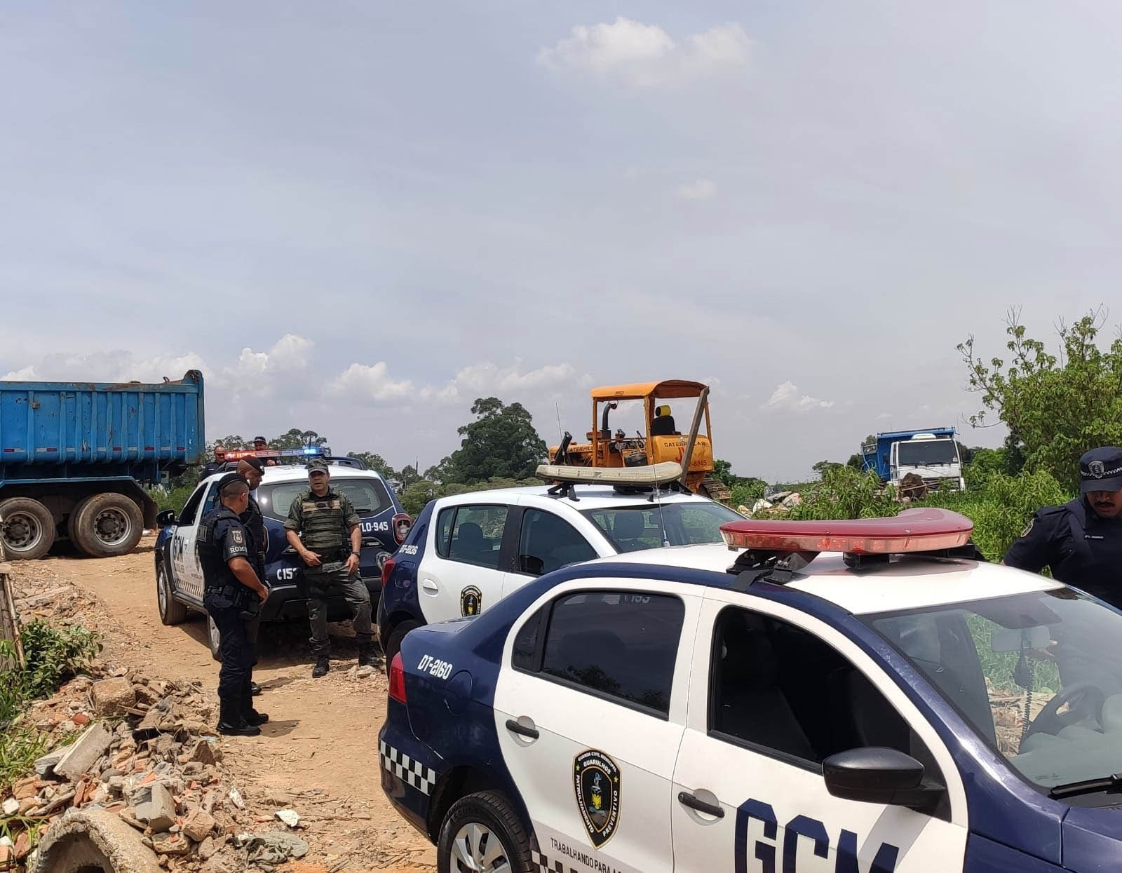 Três caminhões basculantes e um trator de esteiras foram apreendidos e os condutores autuados nesta quarta-feira (7) por poluírem uma área na passagem Dois, Vila Any, em operação entre agentes da Inspetoria Ambiental da Guarda Civil Municipal (GCM) de Guarulhos e de fiscalização da Secretaria de Serviços Públicos. Os motoristas não possuíam cadastro municipal para exercício de atividade de transporte de resíduos.