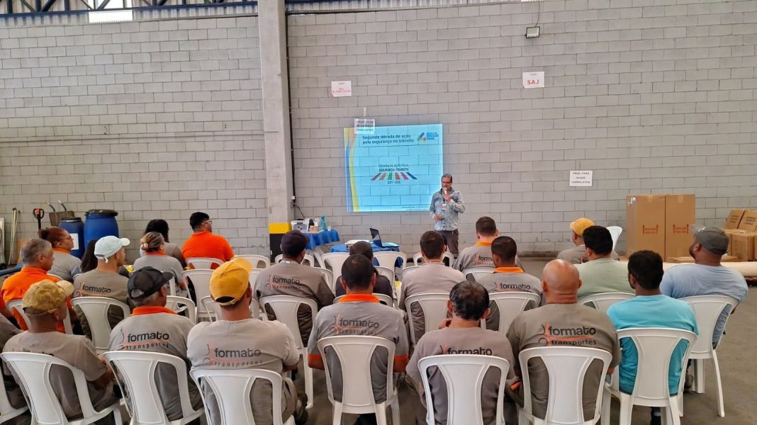 A Prefeitura de Guarulhos, por meio da Escola de Mobilidade Urbana, promoveu nesta terça-feira (20), na Formata Transportes, localizada no Jardim Aracília, uma palestra voltada à direção defensiva. No total 30 colaboradores da empresa participou do encontro, que foi conduzido pelo educador de trânsito Roberto Pardinho.