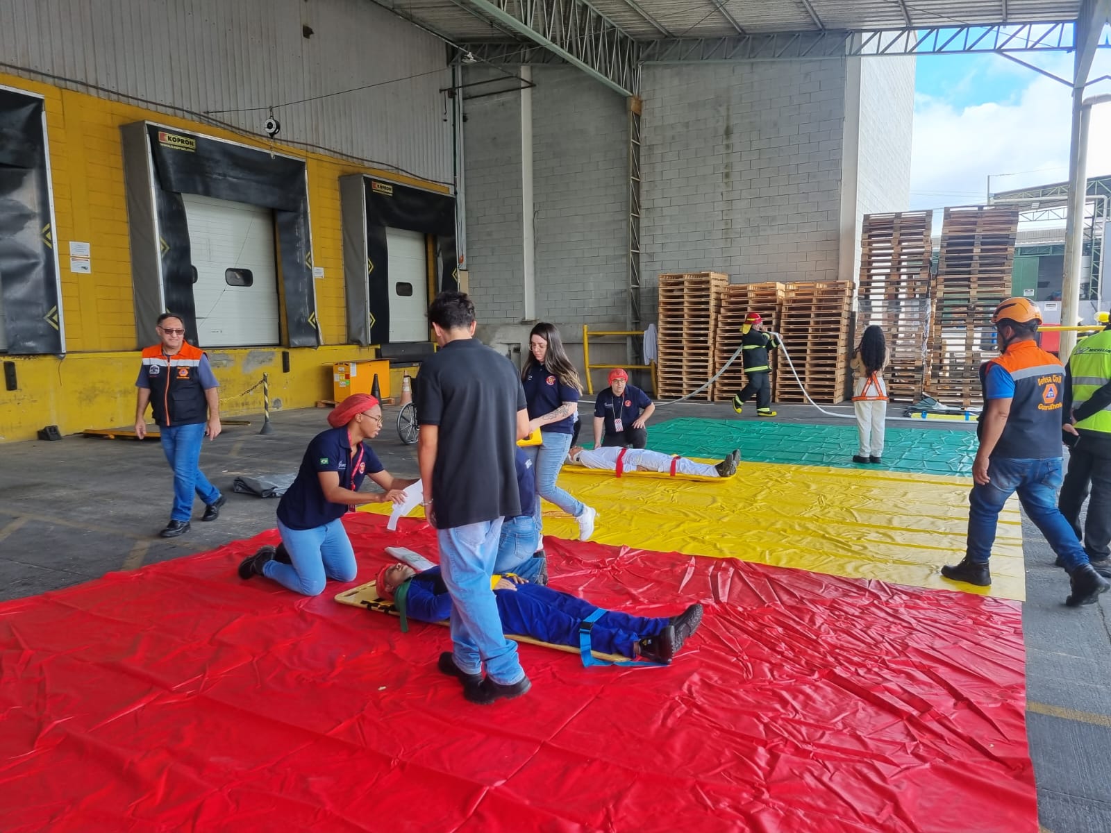 A Coordenadoria de Proteção e Defesa Civil de Guarulhos participou manhã desta quarta-feira (21) de uma simulação de ocorrência realizada na empresa Puratos, localizada na região do Jardim Ipanema. A Compdec esteve presente com 12 agentes e quatro viaturas, atuando em um cenário que envolvia quatro vítimas não fatais em emergência causada por curto-circuito em estação de energia elétrica com explosão e incêndio.