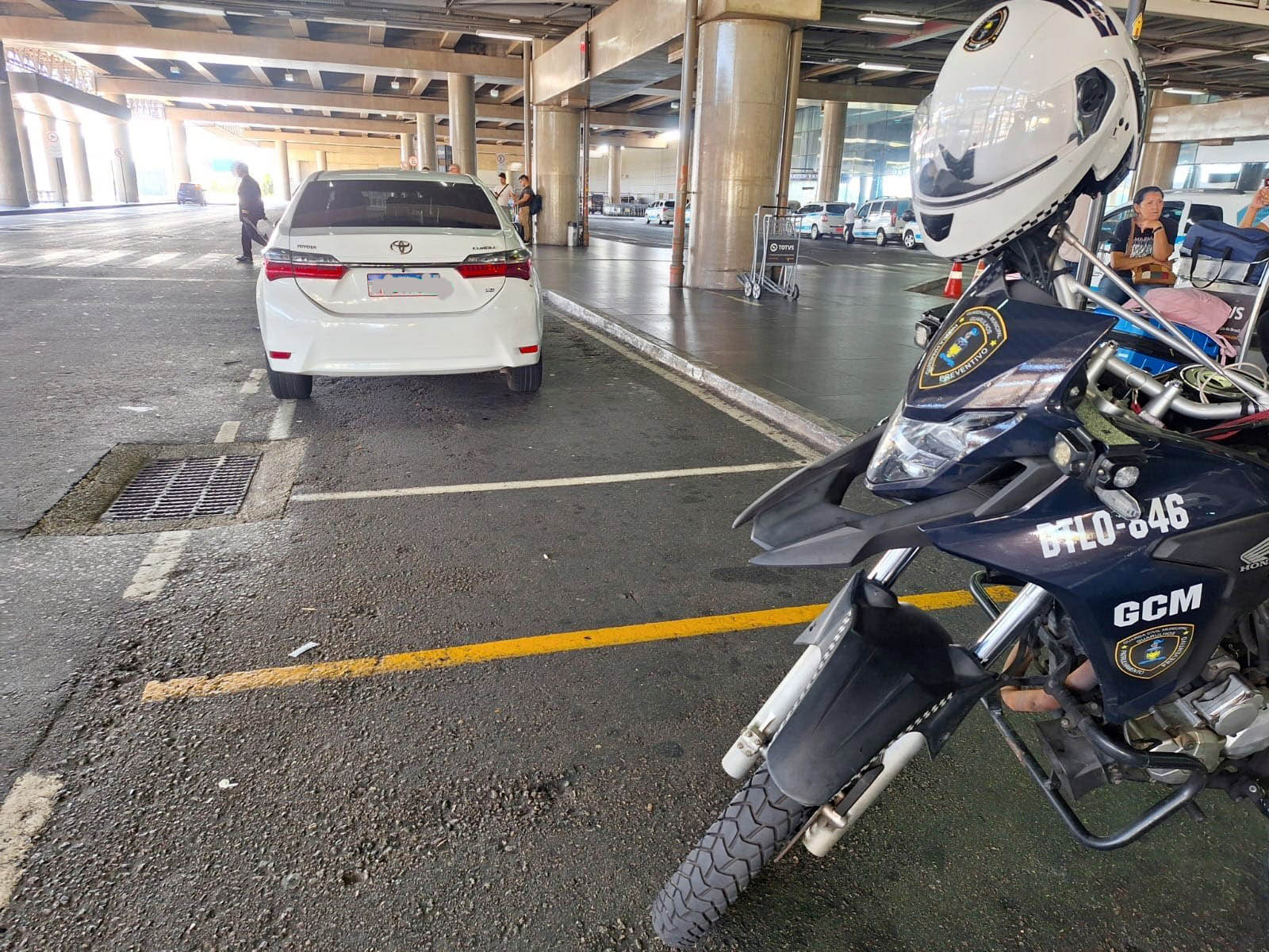 A Guarda Civil Municipal (GCM) de Guarulhos apreendeu nesta quinta-feira (21), no aeroporto internacional, em Cumbica, um veículo Toyota Corolla branco, ano 2018, com Certificado de Registro e Licenciamento de Veículo (CRLV) falso e acúmulo de 48 autuações, que somam quase oito mil reais em débitos e multas. O carro estava estacionado em local proibido, com emplacamento e caracterização para serviços de táxi.