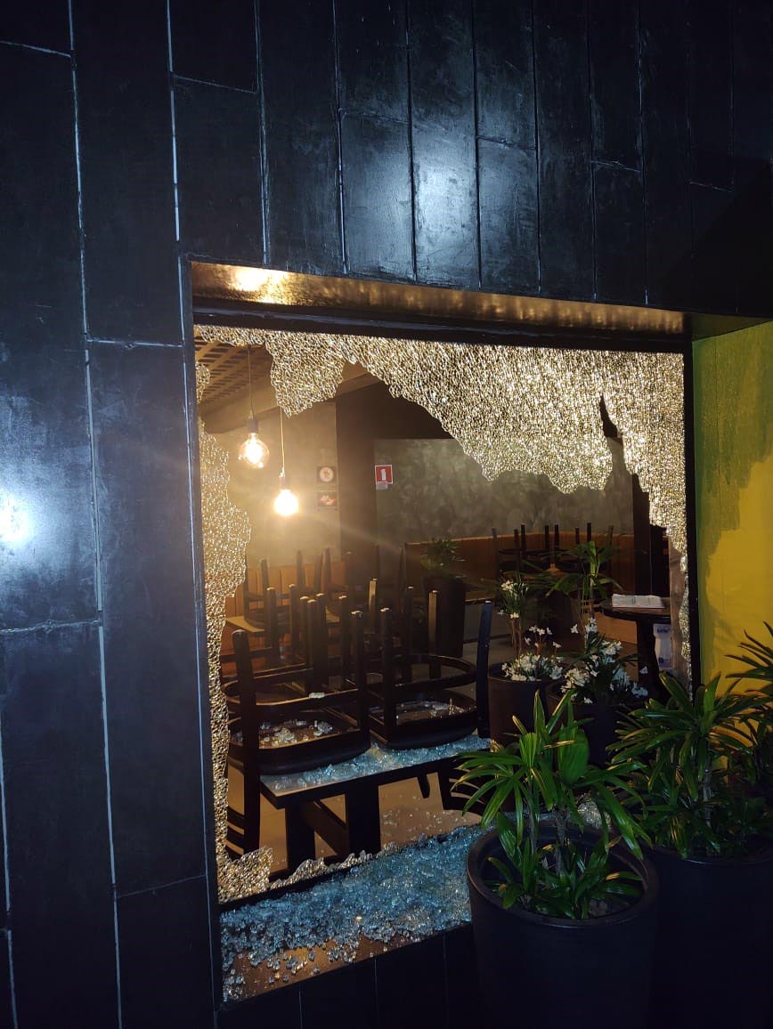 Os adolescentes foram apresentados imediatamente à autoridade no 1º Distrito Policial, que ouviu as partes, inclusive o gerente do comércio, que confirmou o dano e que o local foi revirado. Imagens do circuito interno de monitoramento registraram a presença dos adolescentes no interior do estabelecimento, após a quebra da vidraça com pedras.