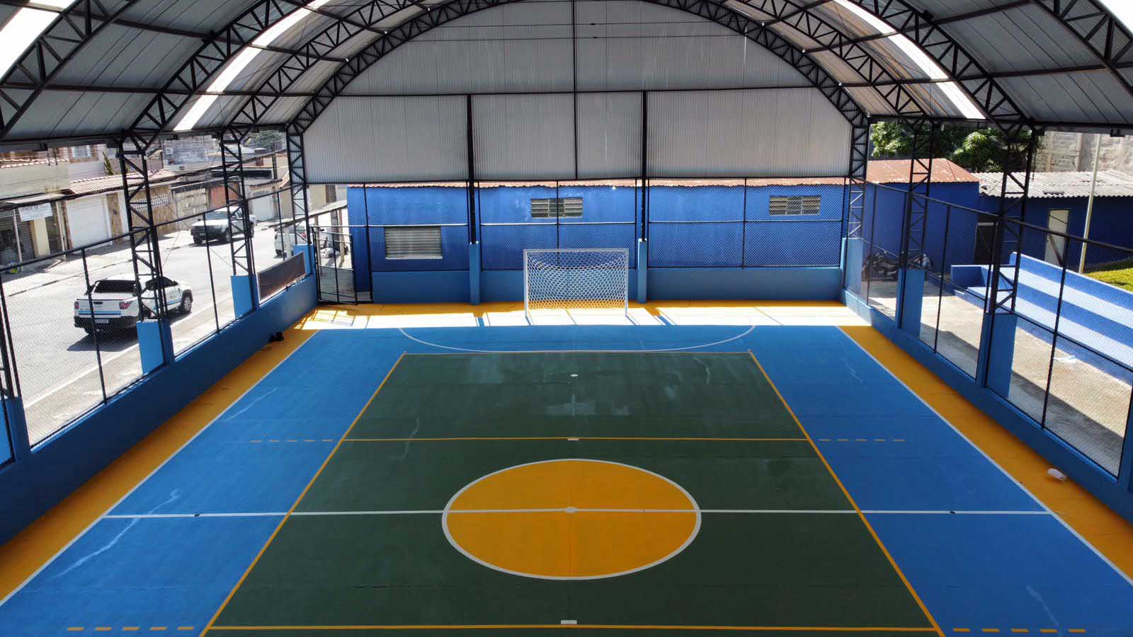 O espaço terá alambrado, muretas e arquibancada. A equipe da Secretaria de Esporte e Lazer também realizou a pintura da quadra e das marcações, além de revitalizar o entorno por meio da instalação de brinquedos e equipamentos esportivos.