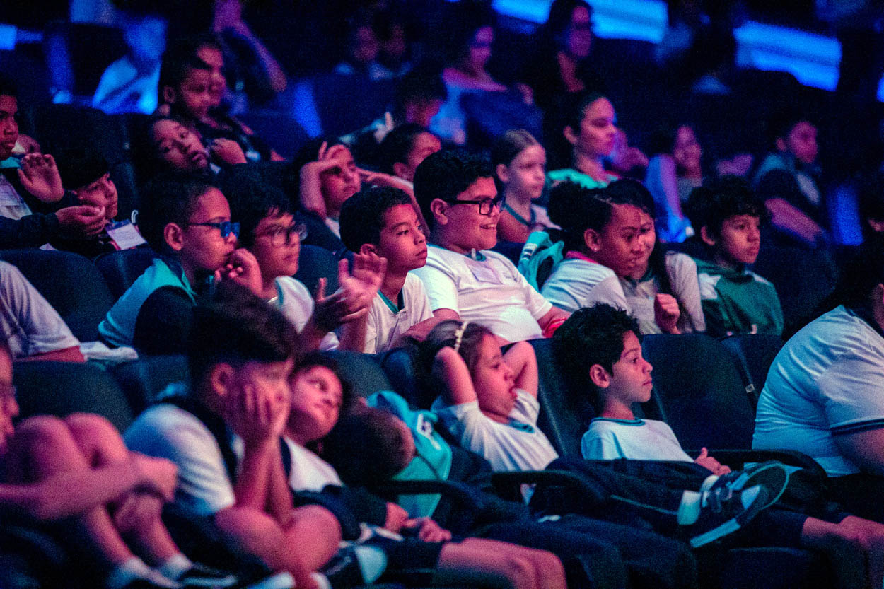 Alunos de escolas da rede municipal de Guarulhos participaram na manhã da última sexta-feira (3), no Teatro Adamastor, da apresentação do espetáculo A Bruxinha, com a Cia. Truks, evento que integra a programação da XII Semana Mundial do Brincar. A partir do tema Vem pra Roda: No Ritmo do Brincar, a edição 2024 do evento convida à retomada das memórias afetivas da infância para que seja possível reinventar o universo brincante dos estudantes.
