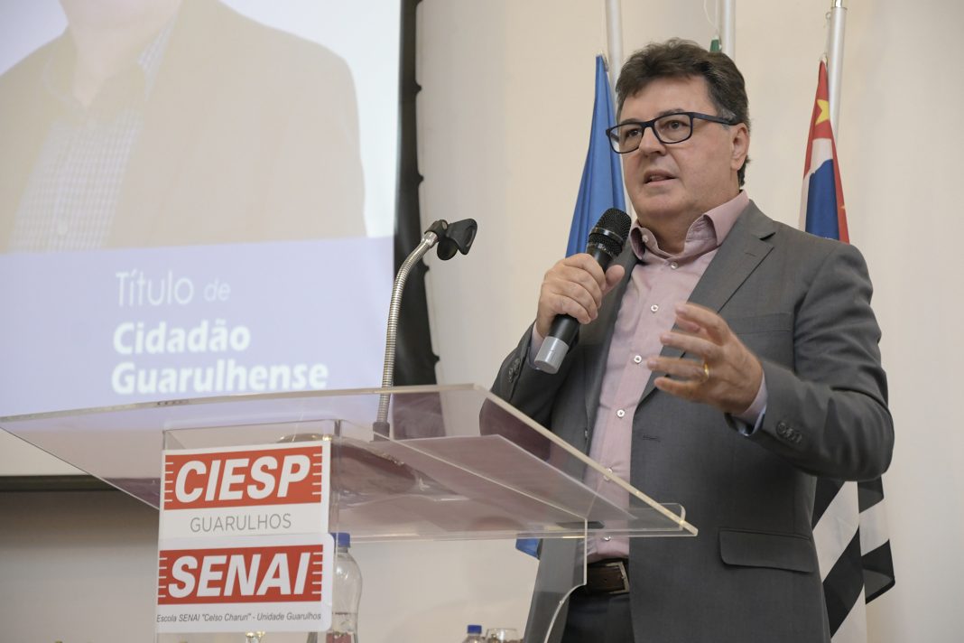 O diretor titular do CIESP Guarulhos, Maurício Colin, recebeu o Título de Cidadão Guarulhense em evento promovido nesta terça-feira, 28/05, no Senai Dutra, com a presença de familiares, amigos, empresários, industriais associados, políticos e autoridades da região. A homenagem foi feita pelo vereador Leandro Dourado, que apresentou o projeto de decreto legislativo na Câmara Municipal. A honraria foi aprovada por unanimidade pelos vereadores de Guarulhos.