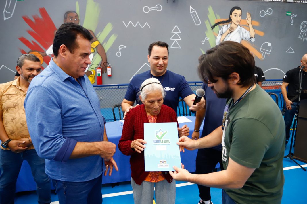 A Prefeitura de Guarulhos entregou 86 títulos de propriedade a moradores dos bairros Jardim Cristina, Cidade Nova Bonsucesso, Vila Serra Preta, Vila Industrial Cumbica e Vila Manfredi em cerimônia realizada no CEU Parque São Miguel no último sábado (8). Esses núcleos, agora regularizados por meio do programa GRU Legal, contam as histórias de ocupações que existem há mais de quatro décadas, muitas vezes sem documentação e condições adequadas de moradia.