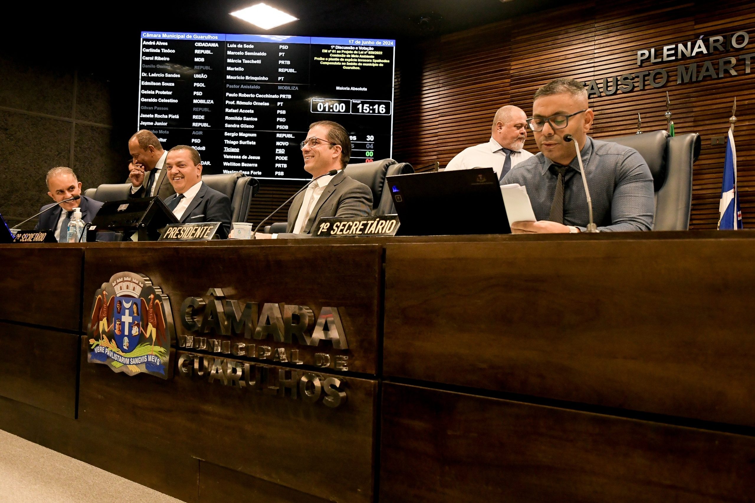 Os vereadores de Guarulhos, em Sessão Ordinária realizada nesta segunda-feira, 17/06, discutiram e votaram seis projetos de lei, todos em primeiro turno e já com parecer das comissões permanentes. Um dos destaques foi o PL 29/2024, proposto pela Prefeitura, que cria o Centro de Operações e Inteligência-COI no Município.