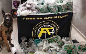 Com apoio do Canil do 5º Batalhão de Ações Especiais de Polícia (Baep), os agentes encontraram um imóvel desabitado, na comunidade Campo do Bandeirante, que funcionava como “casa bomba”. Lá foram apreendidos 7,3 quilos de lança perfume, 190 gramas de crack, 2,2 quilos de maconha, 695 gramas de cocaína e cinco comprimidos de ecstasy, que totalizaram 10,4 kg de drogas. Além de uma pistola 9mm e 28 munições intactas.