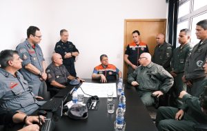 O gabinete reúne técnicos da Defesa Civil do Estado e das secretarias da Segurança Pública (SSP), Agricultura e Abastecimento e de Meio Ambiente, Infraestrutura e Logística (Semil), além de efetivo das Forças Armadas, da Fundação Florestal, DER, Defesas Civis Municipais e brigadistas voluntários. No total, 15.335 pessoas estão envolvidas nos trabalhos de combate às chamas e orientação.