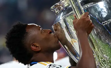 O atacante brasileiro Vinicius Júnior, do Real Madrid (Espanha), finalmente recebeu nesta segunda-feira (16) o troféu de melhor jogador da temporada 2023/2024 da Liga dos Campeões da Europa. Ele foi escolhido para receber o prêmio no início de junho, alguns dias após a final da competição.