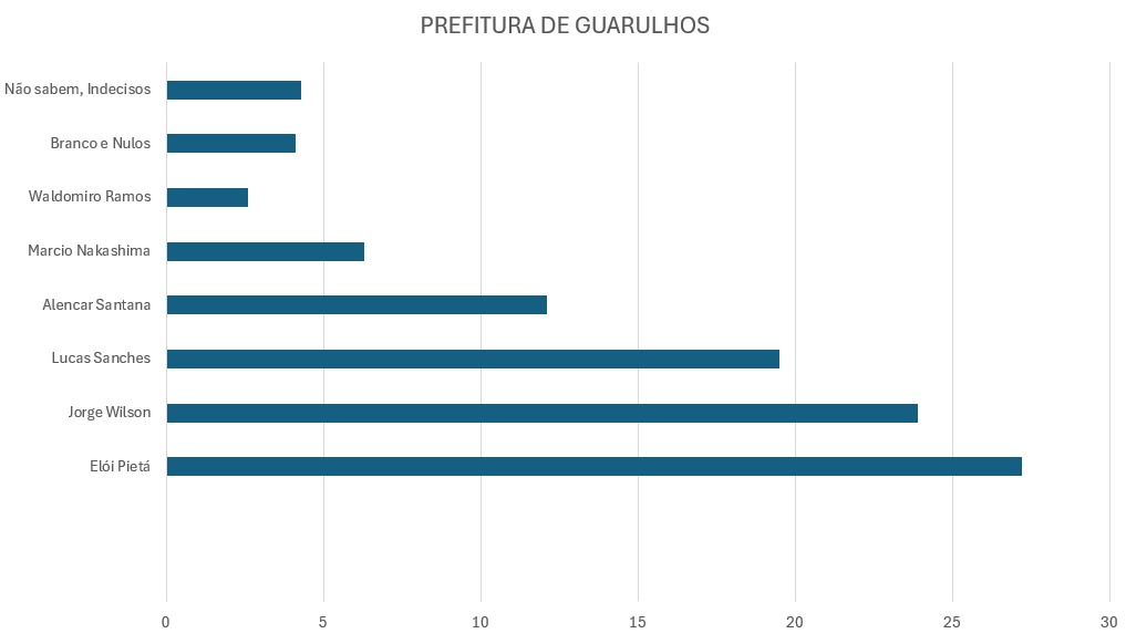 Pesquisa realizada pelo Instituto Vox Brasil, na última quarta-feira (25), colocou o ex-prefeito Elói Pietá (Solidariedade) liderando a corrida para a prefeitura de Guarulhos , com 27,2% das intenções de voto.