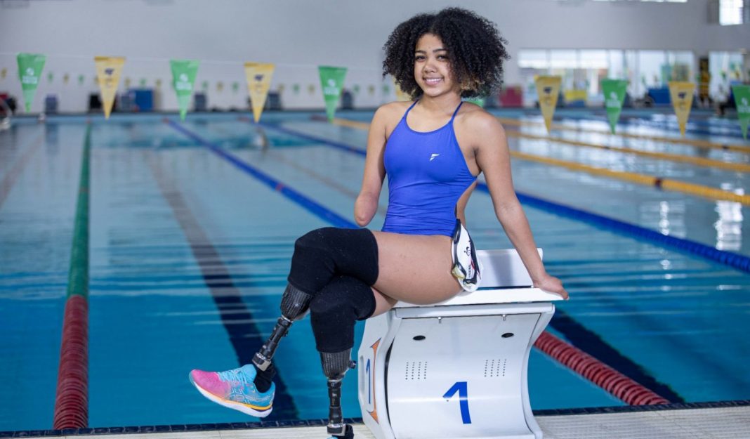 Alessandra Oliveira, do Time São Paulo Paralímpico, da natação classe SM5, volta do Gymnasiade 2024, que aconteceu em Manama, Bahrein, com a bagagem mais recheada. A atleta de 16 anos conquistou dois ouros e uma prata na maior competição do mundo para atletas em idade escolar com e sem deficiência.