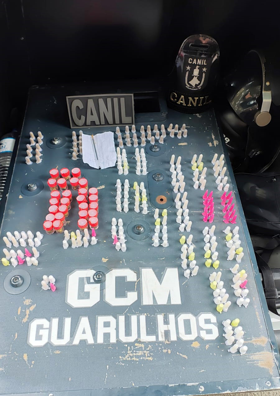 Agentes do Canil da Guarda Civil Municipal (GCM) de Guarulhos apreenderam na tarde de sexta-feira (22) uma bolsa com entorpecentes embalados para o tráfico na rua Maués, Jardim Bom Clima. A equipe, em patrulhamento preventivo pela região com vistas à segurança viária das escolas municipais e do ginásio poliesportivo Paschoal Thomeu, deparou com um homem, que ao avistar a viatura abandonou a bolsa e conseguiu fugir adentrando a comunidade no entorno da EPG Braguinha.