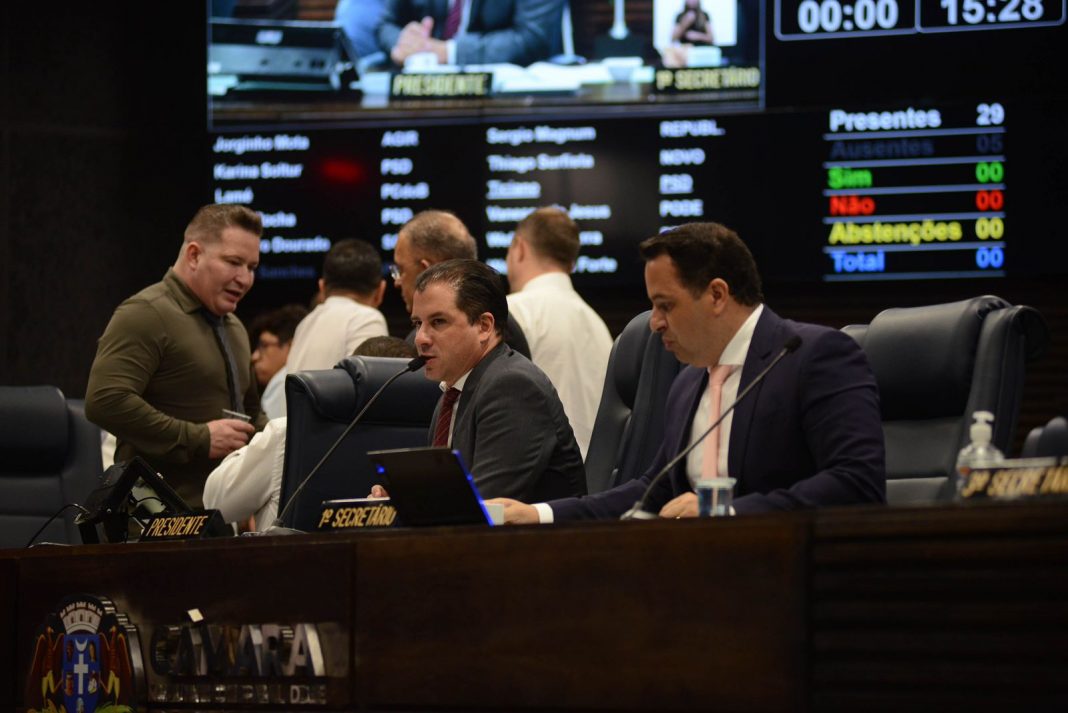 A Câmara Municipal aprovou, em segundo turno de discussão, três projetos durante a sessão desta segunda-feira, 2/12: o PL 1625/2023, que propõe a instalação obrigatória de iluminação em todos os pontos de ônibus da cidade, do vereador Danilo Gomes (Republicanos); o PL 5299/2017, que cria um banco de dados de armazenamento de perfil genético de pessoas sem documento de identificação e falecidas como indigente, da vereadora Sandra Gileno (PSDB); e o projeto de Resolução 001/2024, de autoria da Mesa da Câmara, alterando os artigos 132 e 190 do Regimento Interno da Casa. As alterações mudam o quórum exigido para votação e aprovação de emendas e estão embasadas na legislação federal vigente.