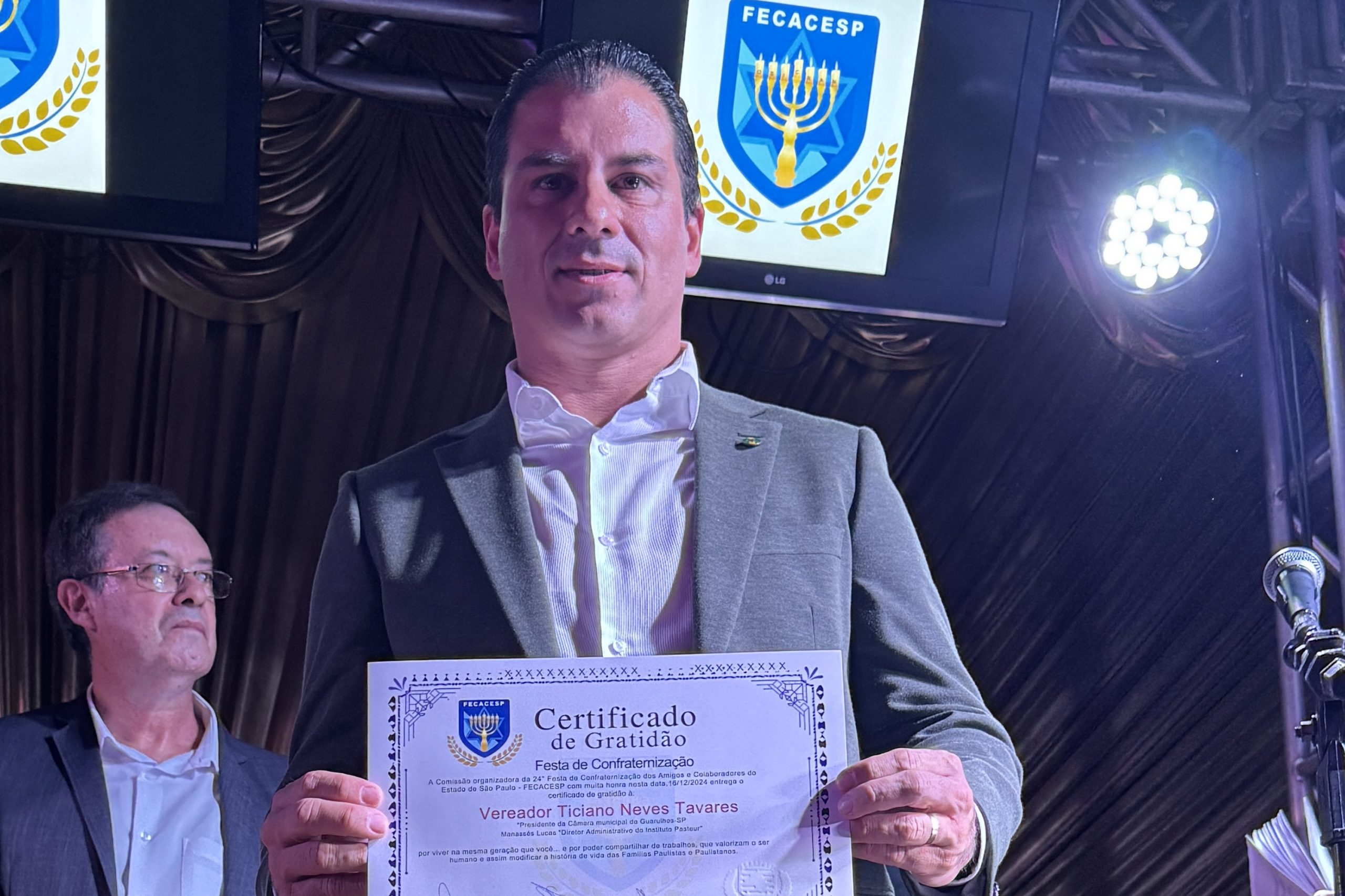 Ticiano recebeu certificados de participação e gratidão, em reconhecimento à sua atuação pública e compromisso com o desenvolvimento social. Durante a cerimônia, os organizadores destacaram a trajetória do presidente da Câmara de Guarulhos, ressaltando sua contribuição significativa para a política local e o trabalho dedicado em prol da população.