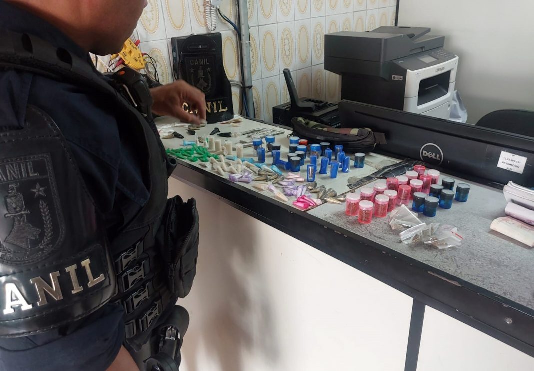 Agentes do Canil da Guarda Civil Municipal (GCM) de Guarulhos prenderam um homem na tarde desta quinta-feira (2) por tráfico de entorpecentes no Jardim Diogo, durante patrulhamento preventivo pela rua Elvira. O homem tentou fugir da equipe e dispensar uma sacola com dinheiro e substâncias embaladas, características do comércio ilícito. Com a ajuda da cadela policial Ventania, outro recipiente com mais substâncias foi localizado escondido nas proximidades, próximo do esgoto.