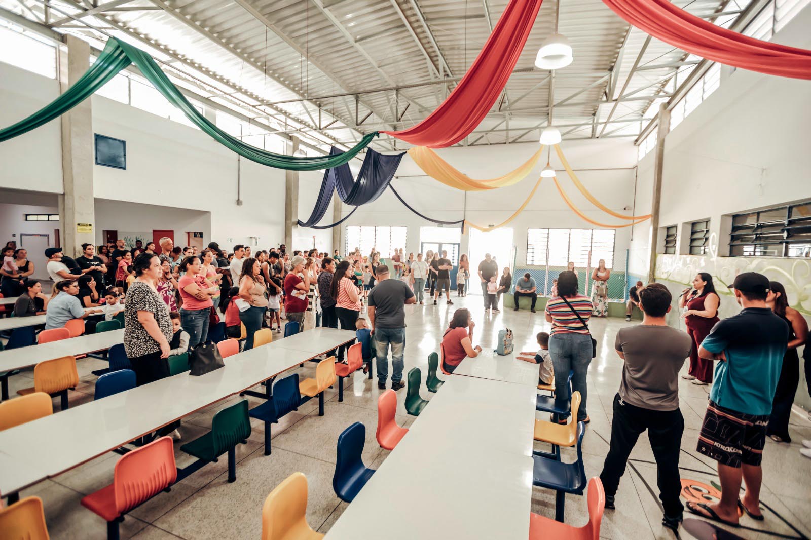 Este encontro no início do ano letivo é fundamental para criar laços e comprometimento das famílias em relação à aprendizagem dos filhos. No período da manhã, os gestores e profissionais da EPG Antônio Houaiss, no bairro Torres Tibagy, reuniram os familiares dos alunos da educação infantil no pátio da unidade para dar-lhes os primeiros informes.