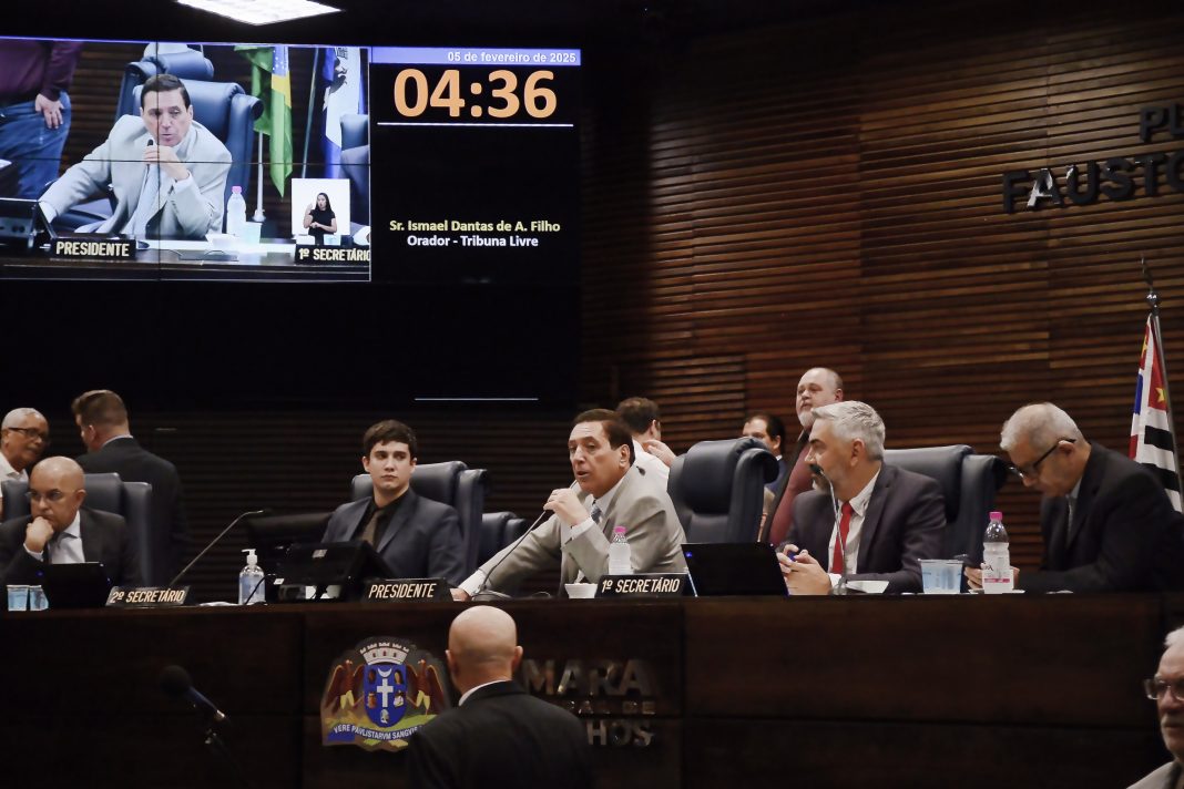 A Câmara de Guarulhos aprovou em primeira e segunda discussão, em sessões extraordinárias, realizadas na tarde de quarta-feira (05/02), dois projetos enviados pela Prefeitura à Casa. Trata-se do PL 25/2025, que propõe uma alteração na Lei 7.379/2015, no que concerne ao uso de símbolos oficiais do Município de Guarulhos; e o PL 26/2025, sobre a desafetação e doação de imóvel público municipal à Fazenda do Estado de São Paulo para a regularização patrimonial da área da Escola Estadual Izabel Ferreira dos Santos – Professora Dona Belinha. “Estou aqui para administrar e direcionar a casa para, dentro da regra, votar os projetos, votar os requerimentos, votar tudo aquilo que passar legalmente pela Câmara Municipal. Fizemos hoje a lição de casa”, disse o presidente Martello sobre a aprovação dos projetos.