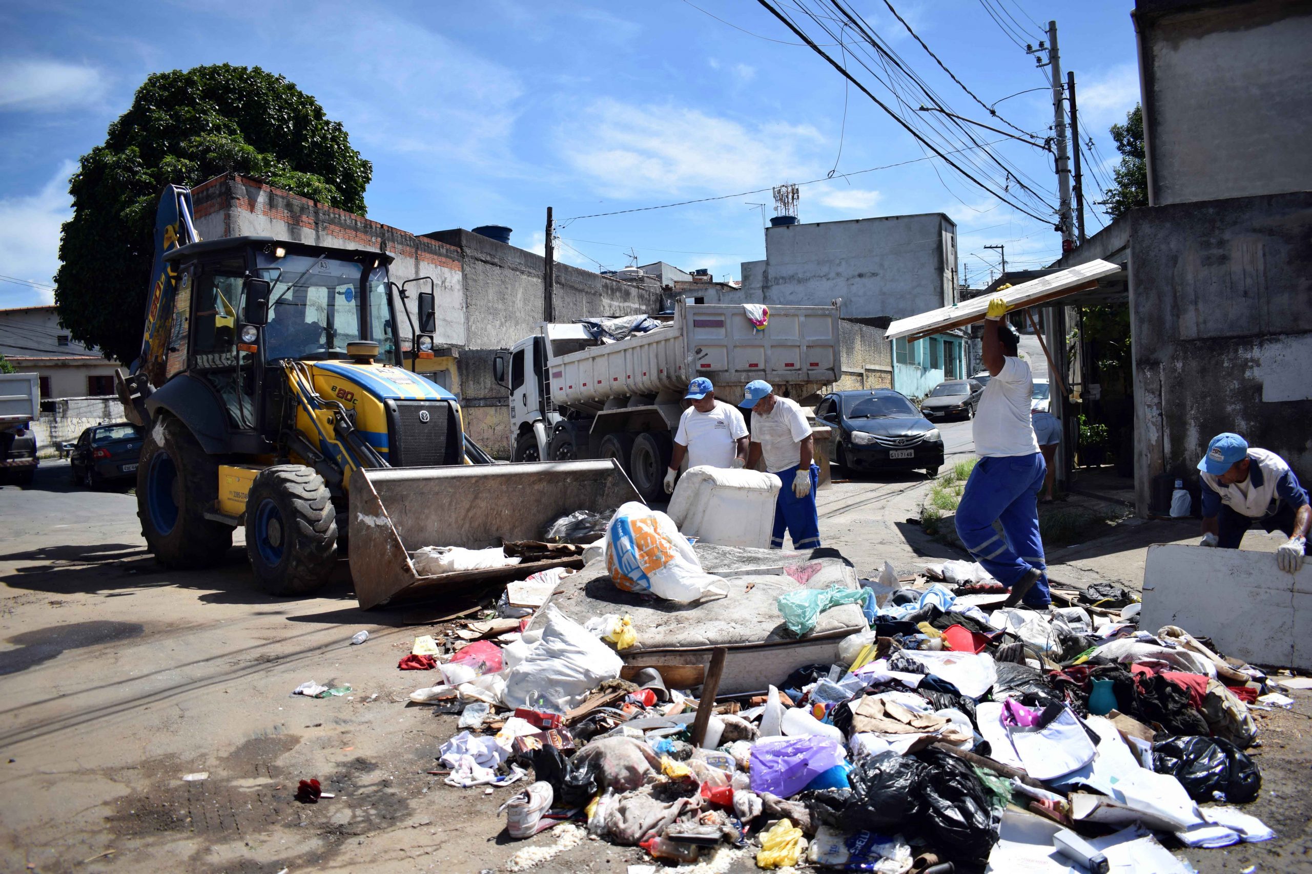 Até o final do dia servidores estimam retirar o equivalente a dez caminhões tipo caçamba de resíduos como colchões, sofás, móveis, roupas e outros materiais que foram levados pela enxurrada. Para agilizar o trabalho estão sendo utilizados três caminhões e uma retroescavadeira.