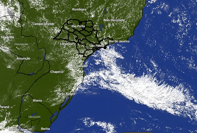 A Coordenadoria de Proteção e Defesa Civil de Guarulhos informa que uma massa de ar frio proveniente do Oceano Atlântico se aproxima do Estado. A imagem de satélite mostra o posicionamento da frente fria próxima ao litoral. Esse sistema provocará condições para chuvas intensas nos períodos da tarde e noite desta sexta-feira (14) na capital, na região metropolitana, na Baixada Santista, no litoral norte e nos vales do Ribeira e do Paraíba.
