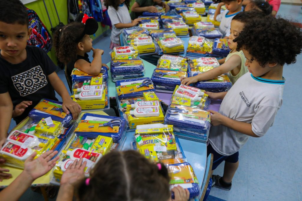 Muito além de contribuir para o desenvolvimento das atividades e aprimorar momentos de aprendizagem com os estudantes, a entrega do kit de material escolar logo no início do ano letivo permite o planejamento de ações para estimular a criatividade e o universo lúdico das crianças.
