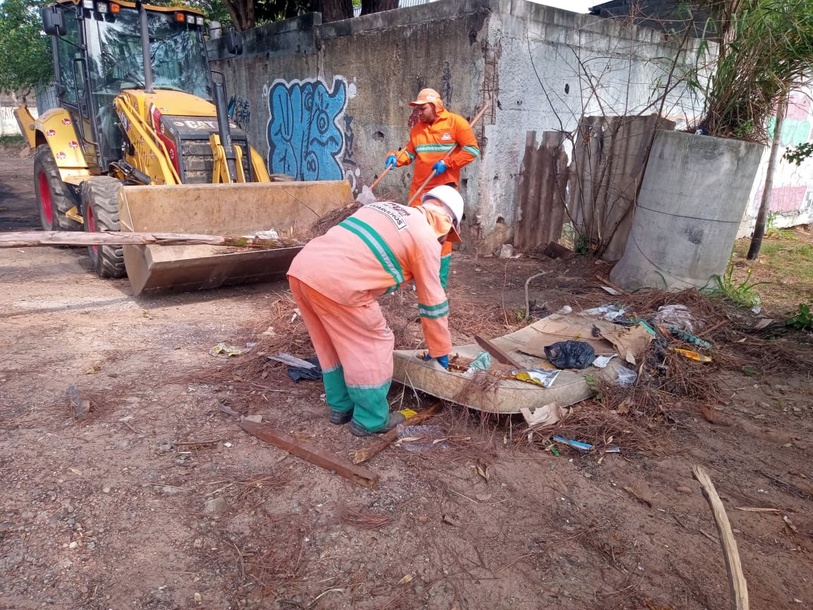 Para remover os resíduos que estavam espalhados pela via, no trecho que compreende a rua Cristóbal Cláudio Elilo até a rua Jatal, a equipe da pasta contou com o apoio de uma retroescavadeira. A população pode fazer o descarte regular e de forma voluntária em uma unidade do Ecoponto Joga-Tralha localizada na via.