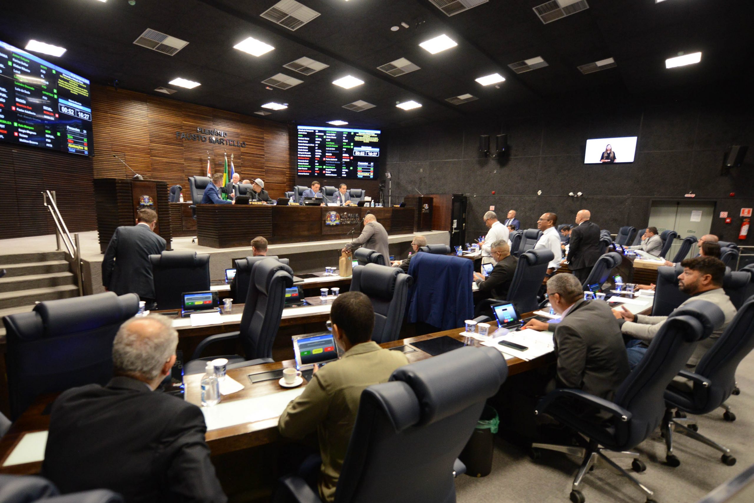 Duas proposituras, ainda em primeira votação, permitem que os membros da Mesa e os vice-presidentes da Casa sejam reeleitos para o mesmo cargo: Projeto de Resolução 1/2025, da Mesa, que altera dispositivo da Resolução 399/2009 (Regimento Interno da Casa); e Projeto de Emenda à Lei Orgânica 1/2025 (vários vereadores), que altera o caput do art. 23 da referida lei.