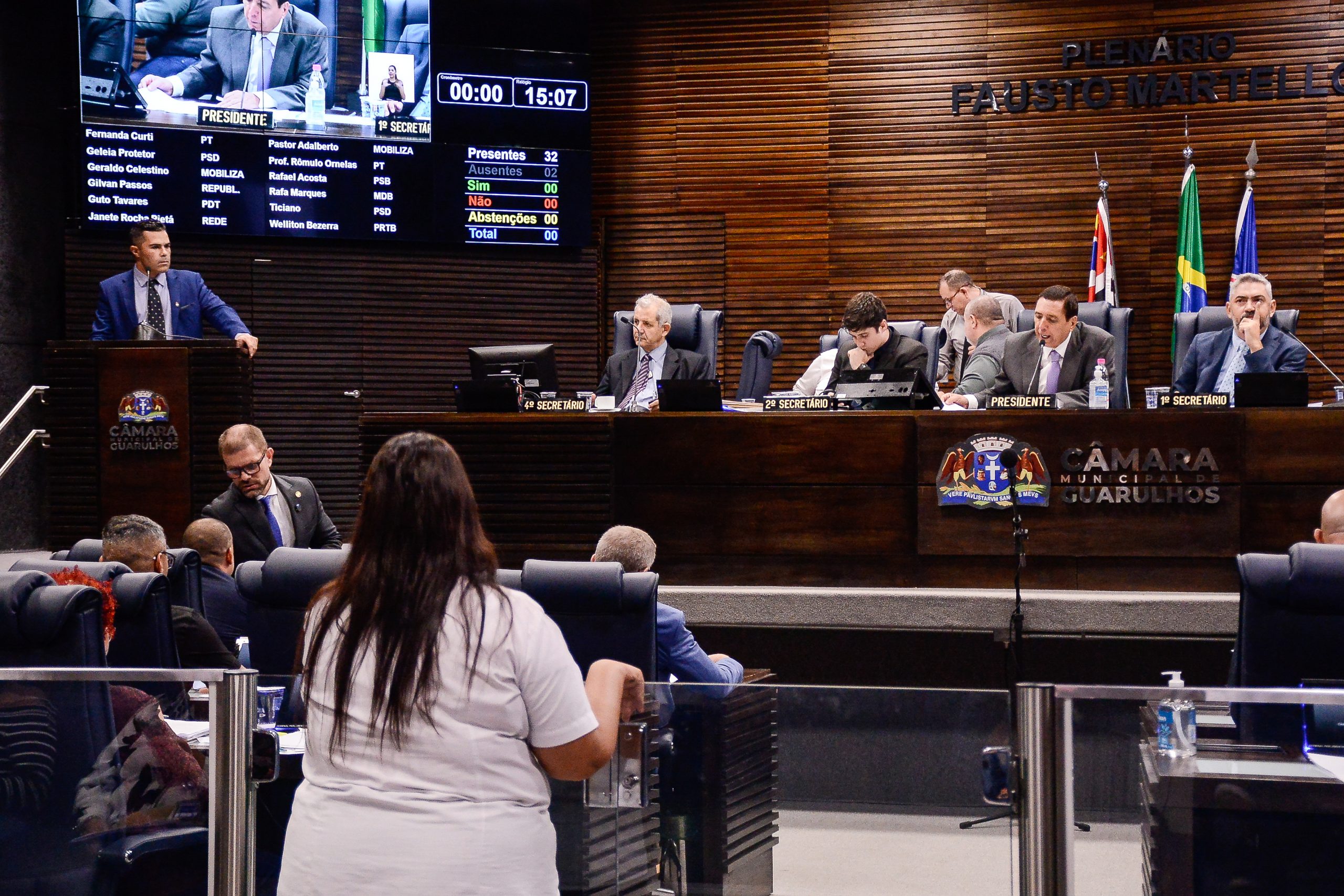 Os vereadores da Câmara de Guarulhos realizaram na tarde desta quarta-feira (09/04) Sessão Extraordinária, na qual, em votação simbólica, discutiram e deliberaram, com parecer favorável, cinco projetos encaminhados pela Mesa da Câmara. Foi o caso do Projeto de Resolução 19/2025 apresentado, que cria o cargo de especialista em segurança da informação e acrescenta um cargo de Consultor Legislativo – Área Administração de Rede no quadro de servidores efetivos da Câmara; e do Projeto de Resolução 20/2025, que dispõe sobre a mobilidade funcional na Câmara.