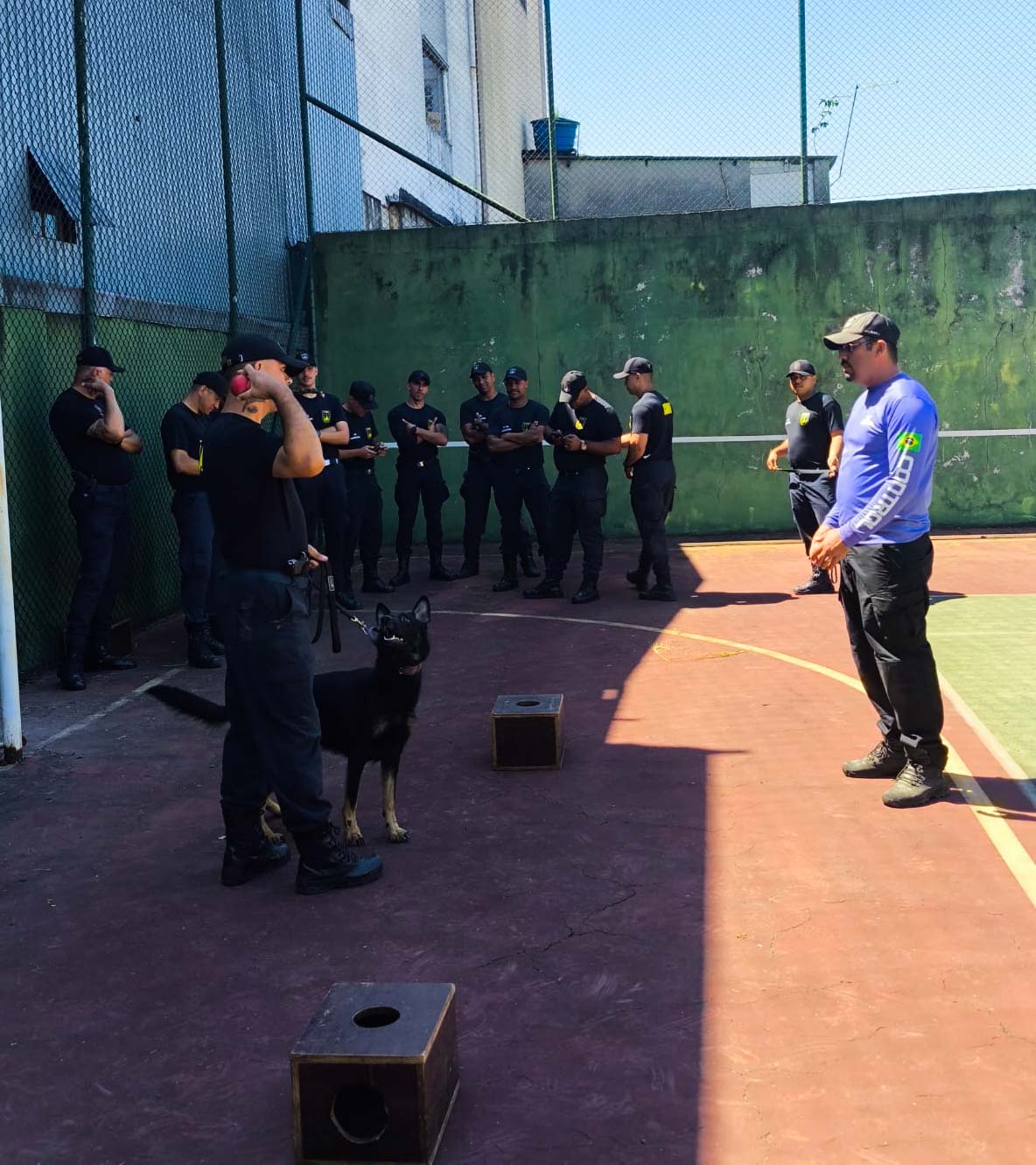 Primeiramente, os GCMs receberam instruções teóricas em sala de aula sobre a formação de cães farejadores para, em seguida, iniciar as aulas práticas em ambiente externo, com foco na mecânica do trabalho nas caixas de faro e nos primeiros passos para o cão na detecção, técnicas de controle de guia e correções na evolução das ações. Outro treinamento importante foi trabalhar os cães com pontos cegos, desafiando os agentes a elaborarem seus próprios planos de busca em cenários variados, de forma autônoma e estratégica.
