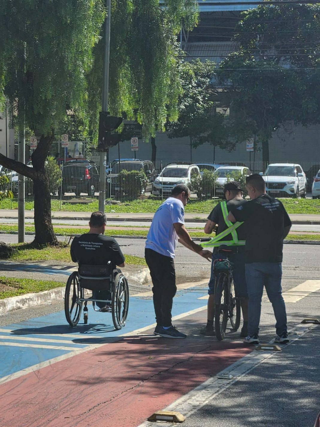 Em Guarulhos, além dos educadores de trânsito, agentes de trânsito e guardas municipais do grupamento de trânsito foram capacitados para realizar a abordagem educativa de ciclistas.