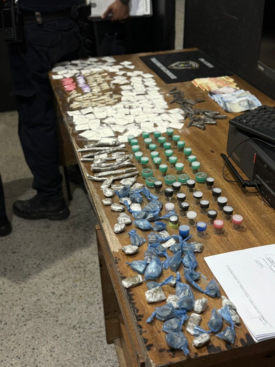 Durante patrulhamento preventivo na rua Cruz das Graças, a equipe avistou o suspeito que, ao notar a presença dos agentes, tentou fugir, mas foi rapidamente detido. Com ele, foram apreendidas 204 porções de cocaína e 156 de maconha, totalizando 360 embalagens de drogas prontas para comercialização.