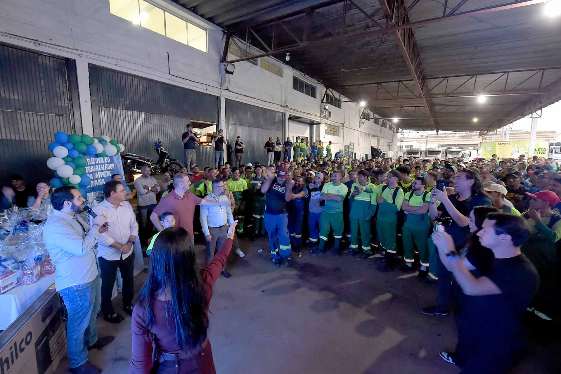 Nesta quinta-feira (22), o pátio da empresa MB Limpeza Urbana, responsável pela coleta dos resíduos domiciliares em Guarulhos, realizou uma confraternização com lanche e sorteio de muitos presentes para centenas de coletores e motoristas que diariamente realizam a limpeza de todas as ruas da cidade em referência ao Dia do Gari, comemorado em 16 de maio. O prefeito Lucas Sanches compareceu ao evento para homenagear os trabalhadores.