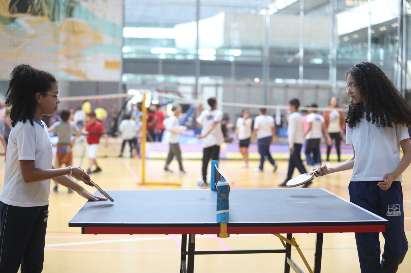 Flingball, paddlesmash, cornhole, hampshot, mini tênis de mesa, spikeball, mesabol e badminton são algumas das atividades das quais os alunos das escolas da Prefeitura de Guarulhos Álvares de Azevedo, Manoel Rezende, Jorge Amado e Anísio Teixeira participaram na manhã desta quarta-feira (28), durante o Dia do Desafio, no Sesc Guarulhos.
