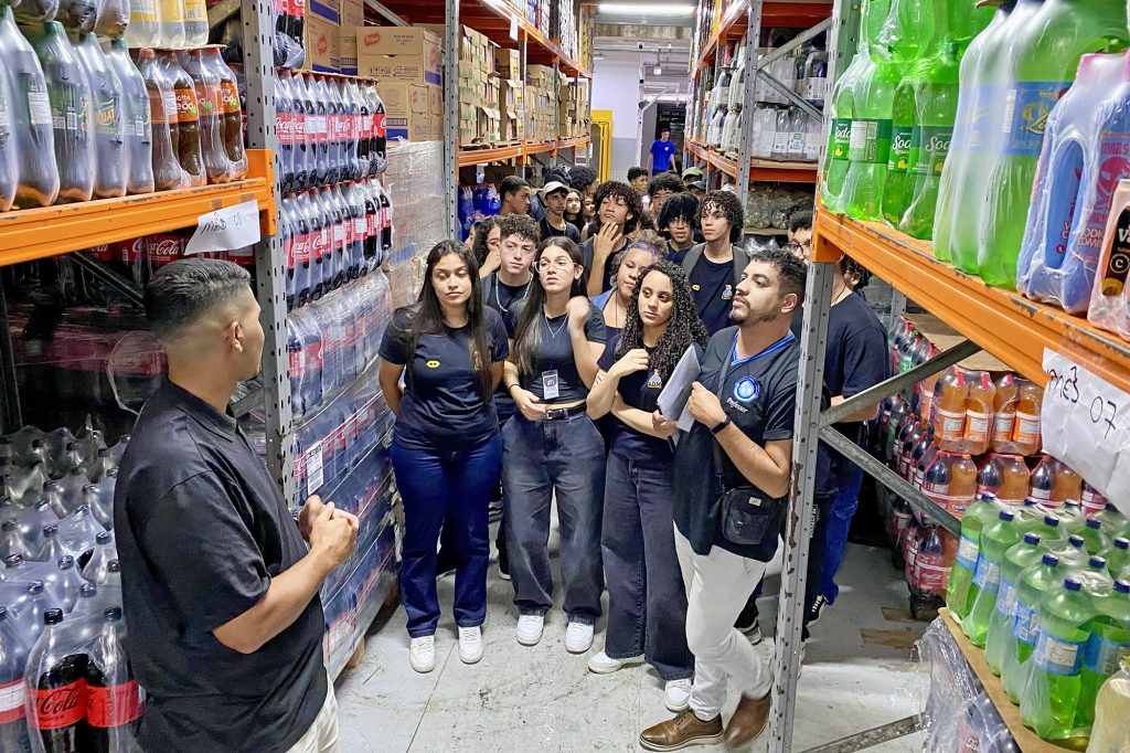 Os alunos foram recebidos por Matheus Júnior, encarregado de Recebimento e Estoque da loja, que apresentou detalhadamente os processos logísticos adotados na unidade, desde o recebimento de mercadorias até a organização dos estoques e a preparação dos produtos para exposição e venda. Ao longo da visita, os estudantes puderam fazer perguntas e observar de perto as rotinas operacionais que sustentam o funcionamento de uma grande rede varejista.