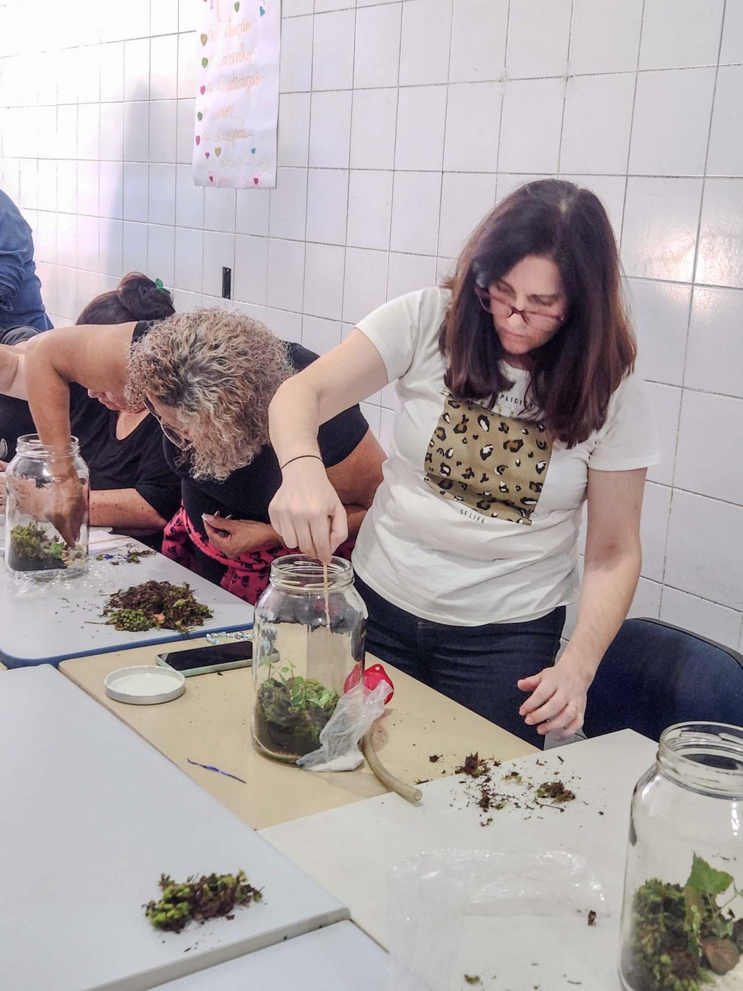 “Nota dez para a aula. Primeiro vou tentar montar um terrário sozinha e ver como me saio. Aí depois vejo o que vai rolar”, contou a moradora do Jardim Gabriela que faz ginástica e alongamento no Adamastor.