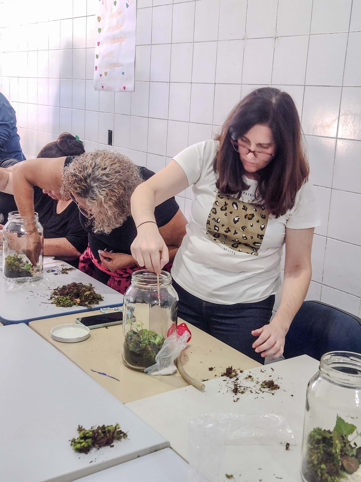 Entre os benefícios da oficina de terrário às participantes estão a elevação da autoestima, estímulo ao empreendedorismo, relaxamento, redução do estresse, reconexão com a natureza, possibilidade de geração de renda e empoderamento da mulher.