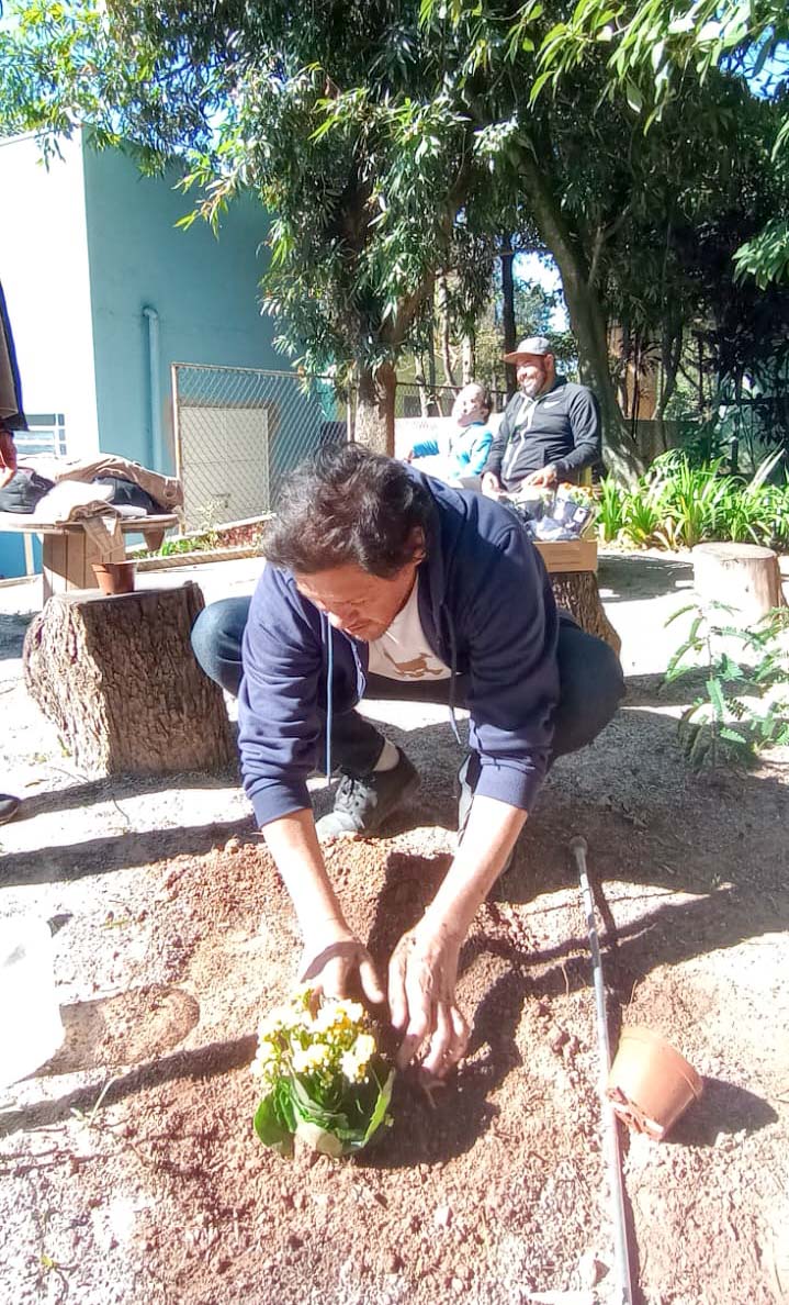 Nesta quarta-feira (16) os alunos com deficiência visual do projeto Práticas Educativas para a Inclusão Social (Peis), que participam do Clube do Livro, se reuniram presencialmente para fazer a leitura do último capítulo do livro O Menino do Dedo Verde, de Maurice Druon. Ao término da discussão, o grupo plantou flores no jardim da Subsecretaria de Acessibilidade e Inclusão, no Macedo, em homenagem ao servidor da pasta, Maurílio Monteiro, falecido em 2024.