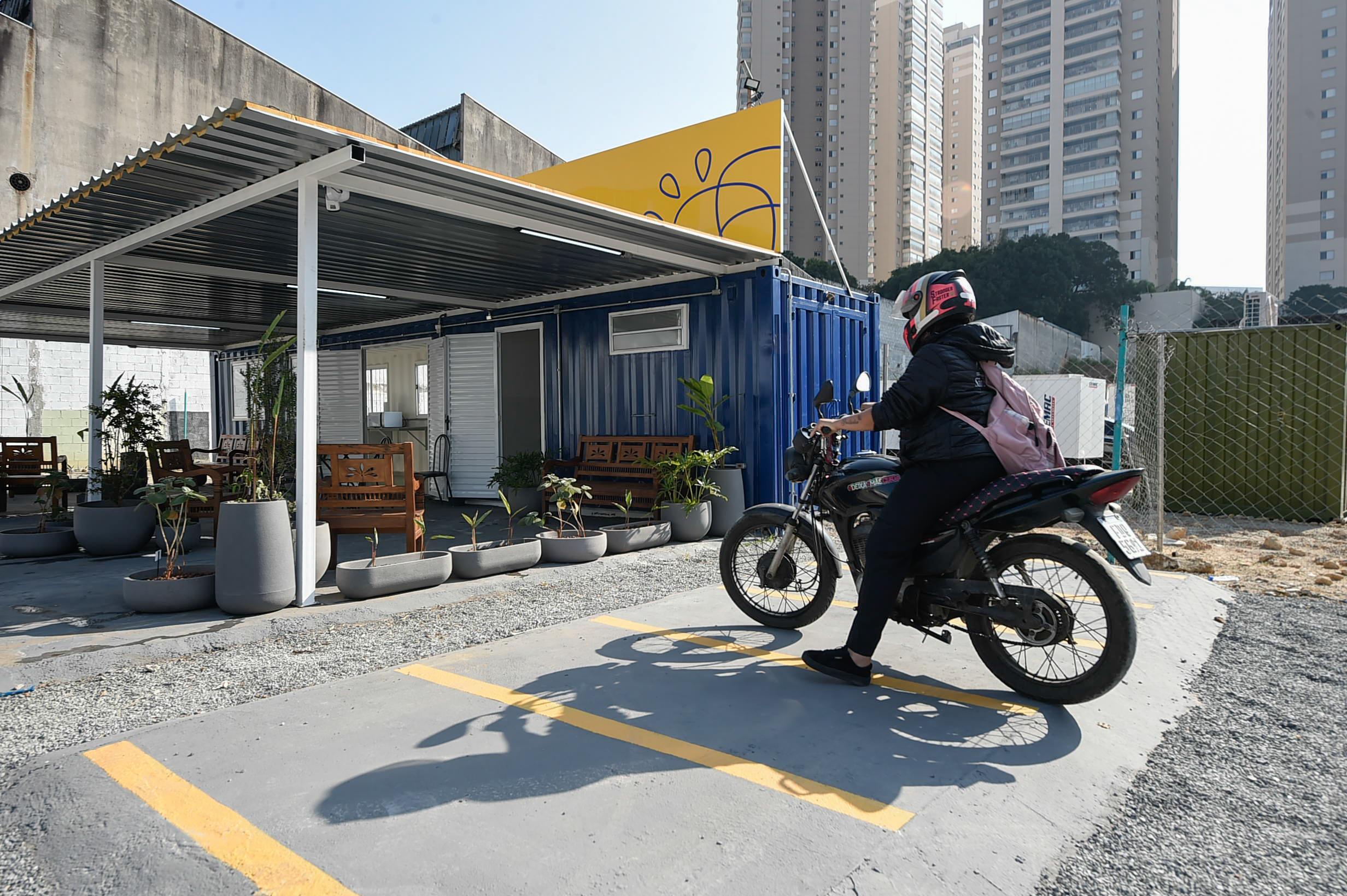 Situado em uma área com mais de 2 mil metros quadrados, o Espaço Motoboy conta com varanda com paisagismo, banheiros masculino e feminino com chuveiros, área de alimentação equipada com geladeira, fogão e micro-ondas, refeitório climatizado, poltronas para descanso, ar-condicionado em todos os ambientes, Wi-Fi gratuito e câmeras de segurança.