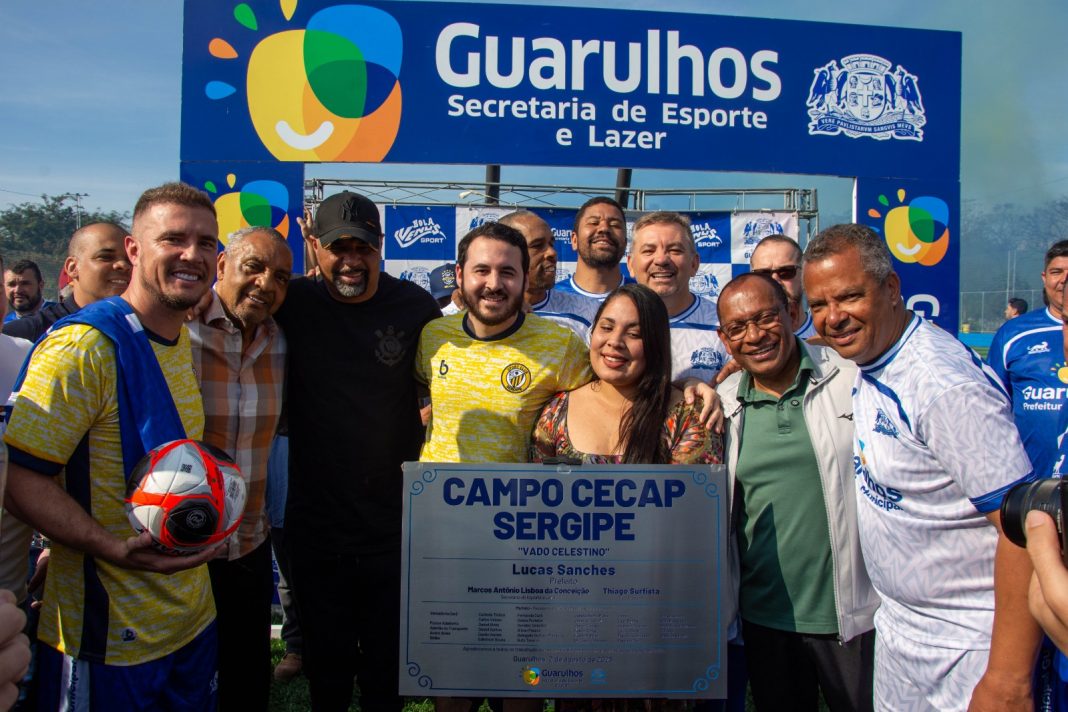 Participaram da solenidade o prefeito Lucas Sanches, o vice-prefeito Thiago Surfista e o secretário de Esporte e Lazer Marcos Lisboa, entre outras autoridades, e os ex-jogadores Basílio e Dinei.