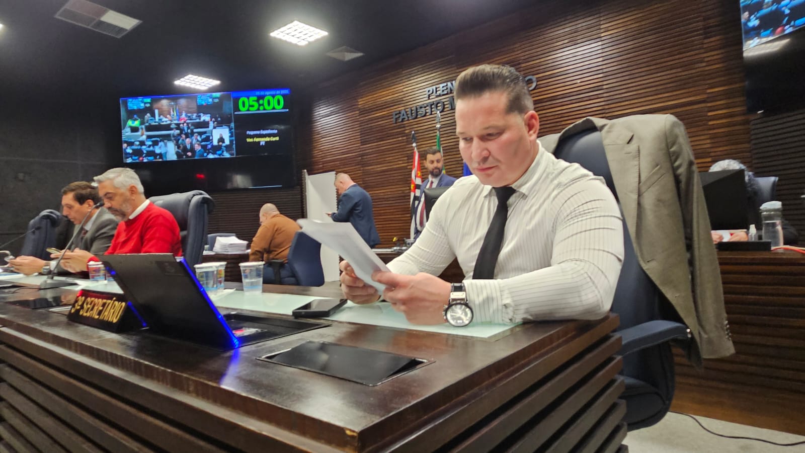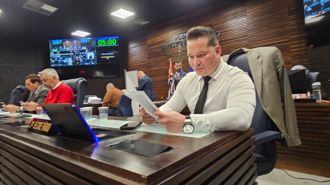 Na sessão desta quarta-feira (06/08), o vereador Leandro Dourado protocolou um requerimento solicitando à Secretaria de Segurança Pública do Estado de São Paulo o reforço do efetivo da Polícia Militar em Guarulhos.