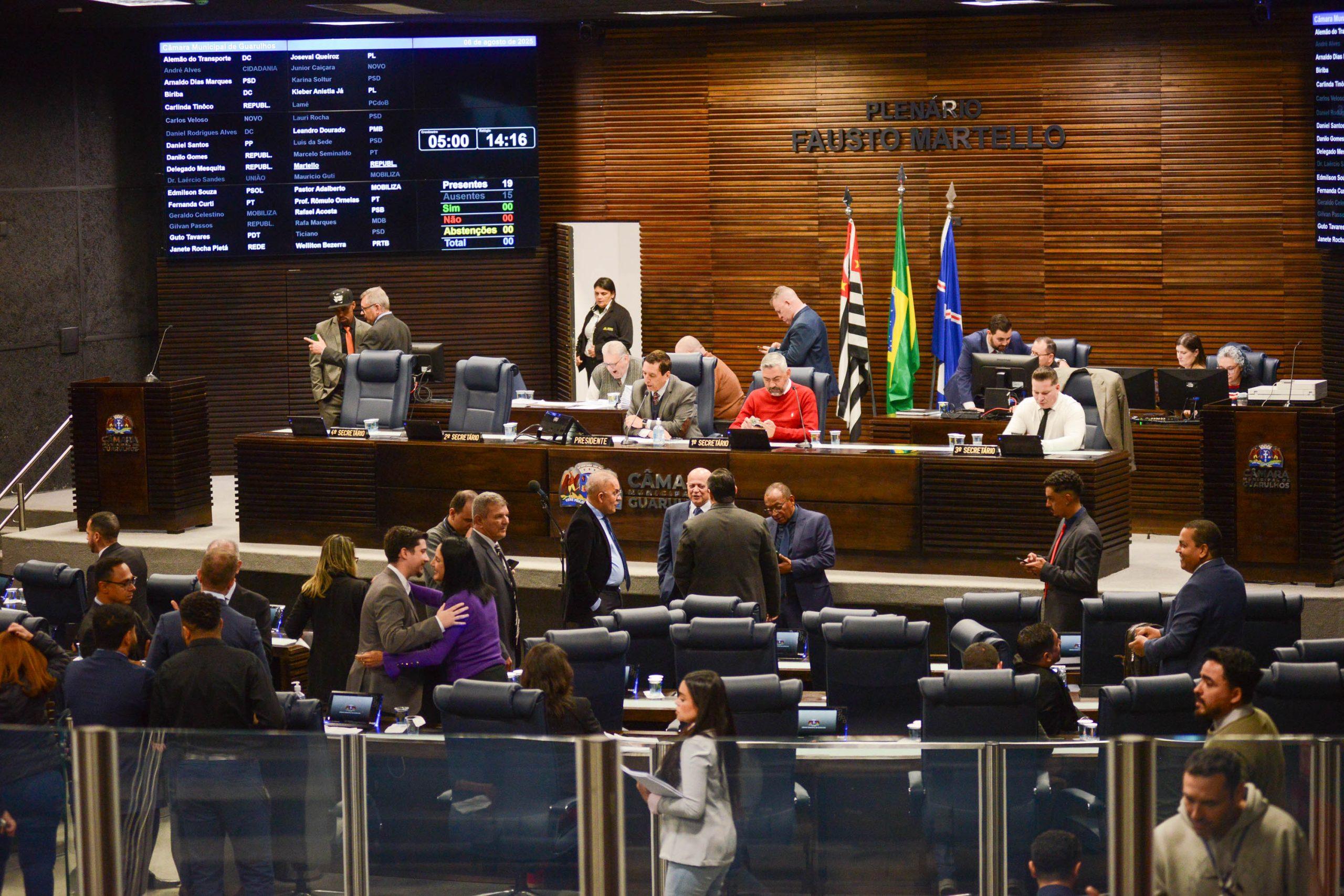 Na Ordem do Dia, três projetos foram votados e aprovados em segundo turno. Este foi o caso da fusão dos Projetos de Lei 037/2025 e 044/2025 (Martello, Republicanos, e Biriba, DC), que trata da emissão de ruídos sonoros excessivos provenientes de escapamentos de motocicletas, veículos e similares, e do PL 2768/2018, que cria o Programa Saúde na Comunidade, destinado à realização de campanhas de saúde pública nas sociedades amigos de bairro, associações e núcleos comunitários em Guarulhos, do vereador Luís da Sede (PSD).