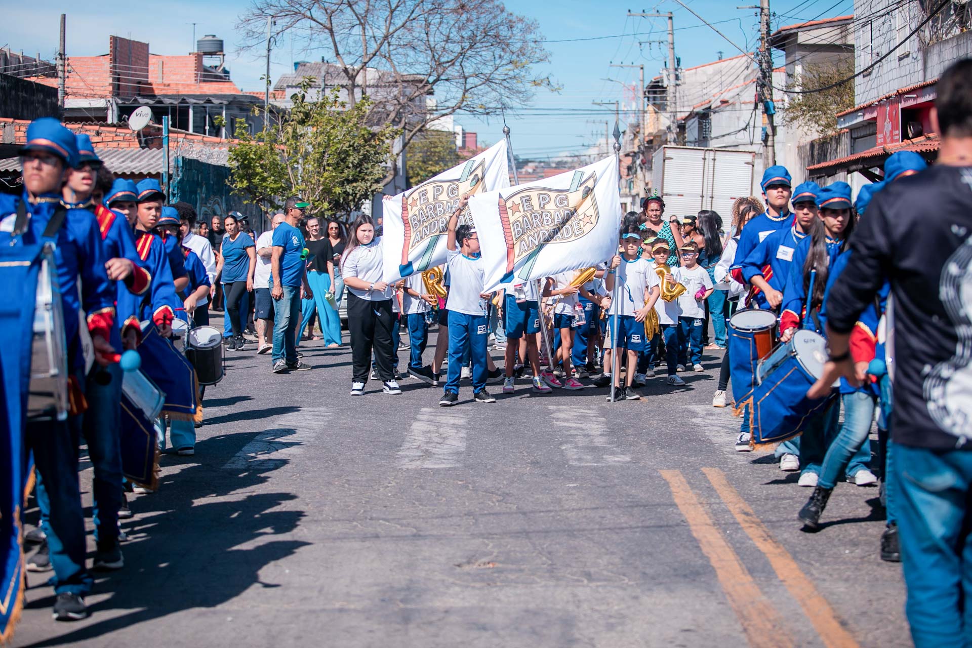 Para incentivar os valores cívicos e envolver a comunidade escolar, na última terça-feira (2) a EPG Bárbara Andrade Tenório de Lima, no Jardim Cumbica, promoveu o 1º Desfile Cívico Descentralizado em parceria com a Fanfarra da Escola Estadual José Alves Cerqueira César. A iniciativa, alinhada ao projeto político-pedagógico da escola (PPP) celebrou a Semana da Pátria, com atividades culturais que ampliaram os espaços de aprendizagem para além de aula.